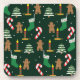 Diseño de navidades verdes con árboles de navidad, latas de dulces, medias de navidades y galletas de pan de jengibre.
