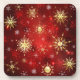 Posavasos Navidades Copos de nieve dorados con fondo rojo