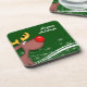 Rudolf el personaje de reno de nariz roja sobre un fondo verde de nieve. Cuto diseño de montaña rusa de saludos de Navidad.