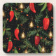 Los pimientos rojos y verdes festivos con brotes de siempre verde y las brillantes luces de los Navidades componen el patrón de esta obra de arte. Muestre algo de fiesta de frivolidad con sus espíritus navideños, y Feliz Navidad!
