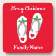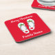 Navidades personalizados en julio en la montaña rusa de bebidas. Añade tu propio apellido y saludo. Divertido diseño de chanclas de playa con tipografía de escritura elegante. Color rojo o personalizado. Respaldo de corcho. Decoración de vacaciones.