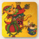 Un lindo joven y festivo gato de tabby amarillo en un gorra fiesta sentado en un caldo de Navidades, presentando regalos. Decorado con arcos, cintas y hojas huecas en colores alegres y brillantes. Un regalo perfecto para cualquier persona que simplemente ame gatos, gatitos y Navidades.