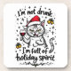 Un divertido y alegre diseño de Navidades exhibe a un gato con sombrero de Santa, sosteniendo un vaso de vino tinto. La escena festiva está decorada con estrellas y campanas de Navidades, acompañada de un texto escrito a mano que dice: "No estoy borracho, estoy lleno de espíritu festivo". Este encantador diseño está disponible en una variedad de productos, lo que lo convierte en un regalo perfecto para los amantes del vino.