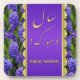 Noble y elegante ilustracion de Año Nuevo persa: Borde de oro púrpura en un campo de flores de jacinto con deseos de Año Nuevo en inglés y farsi.