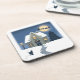 Posavasos Noche nevada estrellada con gato y Santa Sleigh