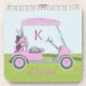 Posavasos Nombre del monograma del carrito de golf rosa feme