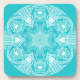 Esta mandala blanca se asienta sobre un fondo turquesa. Los colores son muy tranquilos y relajantes. Parte de la colección Howlsplann Mandala.