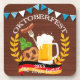 Festival de cerveza Oktoberfest con una taza de cerveza, pretzel, salchicha, una bandera con los colores de la bandera alemana y banderas bávara en la parte superior para celebrar la fiesta de Oktoberfest en otoño.