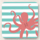 Esta moderna y moderna montaña de estilo playero contiene un pulpo rojo con un fondo blanco y verde azulado a rayas. Puede personalizar esta montaña rusa con su inicial.