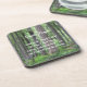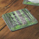 Proteja su mesa de las marcas de agua y manchas de las bebidas con este conjunto de 6 tiras de bebidas plásticas con respaldos de corcho que muestran la imagen de un bosque exuberante y siempre verde junto con las palabras inspiradoras de la Oración de la Serenidad.