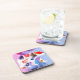 Oso celeste con sonrisa. Este oso polar, que calienta el corazón, se encuentra en un paisaje acuático de tonos azules, morados y rosas, irradia positividad y encanto lúdico, ideal para impresiones artísticas o la moda infantil.