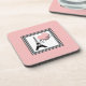 Ilustracion de París con Torre Eiffel y decoración cardíaca en cuadrados blancos y negros sobre fondo rosa