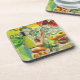 Este conjunto de seis capuchas con respaldo de corcho hacen un regalo perfecto para la anfitriona de verano, el favor de la ducha o para su propio uso. Hermoso y colorido diseño de vino, queso, panes, frutas sobre azulejos mexicanos verdes y blancos.