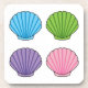 Un ilustracion de cuatro conchas de colores pastel. Este paquete de conchas marinas tiene cuatro colores hermosos diferentes: azul, rosa, verde y violeta. Este diseño es un buen regalo para los amantes de la naturaleza, los amantes del océano, los amantes del marisco y los amantes de la concha.
