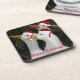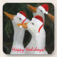 Plástico duro, una montaña rusa para bebidas para las vacaciones que presenta una foto caprichosa de un bagle de patos blancos con sombreros de Santa roja, deseando unas vacaciones felices. ¡Un diseño divertido para las vacaciones!