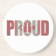 Un diseño patriótico basado en texto con la palabra PROUD hecho en un tipo de letra candente de bandera canadiense.