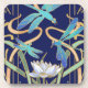 Estilo Art Nouveau con un toque contemporáneo, con libélulas, lirio del valle y un florecimiento de loto. El diseño es animado y elegante, con colores frescos como la marina, los tonos dorados, el melocotón, el verde y el blanco. Obra de arte original y patrones de superficie de L. Diane Johnson.