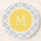 Posavasos Patrón de quatrefoil gris, monograma amarillo