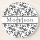 Posavasos Patrón elegante de damasco francés blanco y negro