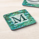 Posavasos Peacock Bird Feather Monograma Verde azulado Monog