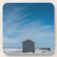 Portarretratos, fotografía pequeña choza en la nieve con jaulas de langostas. Título: “La choza del pescador”, Iles-de-la-Madeleine, Quebec, el Canadá. María-Eva LaBadie fotógrafo