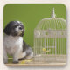 Posavasos Perro cerca de una jaula de pájaros