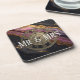 Enhance your home and kitchen decor with customized coasters designed to combine style and function. Crafted from durable high-gloss plastic with a non-slip cork backing, these coasters protect your surfaces while showcasing your photos, artwork, or designs in vivid, high-resolution color. Centre has a steampunk style metallic luxury luster dialing numbers from 1 to 12 of a clock. The monogram and the shimmering background of pink agate stone can be personalized. Replace the monogram and the background with your own artwork. Perfect gift for Valentine, newlyweds, couples on housewarming, birthday, Valentine's Day and anniversary.