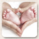 Pies del bebé en manos de la madre bajo la forma de corazón