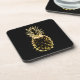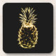 Un contorno dorado garabateado de una piña brilla contra un fondo negro.