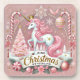 Add a whimsical holiday touch to your table with the Pink Christmas Wonderland Unicorn Beverage Coaster. This charming design features a pastel pink unicorn with golden accents and a small crown, surrounded by candy canes, ornaments, snowflakes, and a sparkling Christmas tree.
