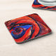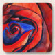 con el diseño original de arte de la pintura acuarela de Sacha Grossel de gran enfoque, macro estilo rosa rojo con resaltes azules. Esta flor inglesa tradicional con pétalos crimson tiene un diseño de color intenso y brillante que transmite la abstracción de la forma botánica y los temas del amor y la pasión.