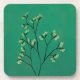 La montaña rusa verde con una obra de arte minimalista que presenta una elegante pintura floral digital de una planta herbácea floreciente sobre un fondo verde oscuro que recuerda a la primavera.
