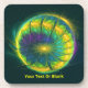 Una imagen fractal esférica segmentada (o articulada) verde, azul y amarillo sobre un fondo verde oscuro. Personalizar agregando su propio texto.