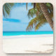 Tranquila y tranquila playa de arena blanca y tropical. Aguas turquesas y algunas palmeras a la sombra. El lugar perfecto para descansar y relajarse.