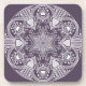 Esta mandala blanca se sienta sobre un fondo de ciruela. Los colores son muy refinados. Parte de la colección Howlsplann Mandala.
