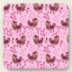 Gallinas cortas con flores de flores en el fondo rosado