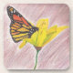 Prácticos de costa con una mariposa de monarca que descansa sobre una flor amarilla. Un gran regalo para alguien apenas que se mueve hacia fuera o que busca algo nuevo y diferente para tener en su hogar.