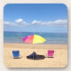 Sillas coloridas paraguas. Mira mirar tan pacífico hacia fuera el océano.