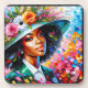 La celebración de la temporada de primavera está en camino. Esta es una pintura acrílica de una bella dama en su gorra de primavera con una ráfaga de colores en una madrugada del domingo.