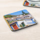 Acuarela Aldea mediterránea con casas blancas y baldosas rojas con vistas a la calle en Portugal