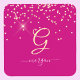 Diseño de moda de purpurina dorado con monograma dorado y nombre de escritura blanca en fondo fuchsia.