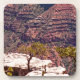 Fotografía de una formación de piedra con un árbol creciendo a partir de una de las grietas. Cerca del punto de formación se encuentra un pequeño observador que da al cañón. El fondo es una pared de piedra roja que desciende a lo profundo de la tierra, con manchas de crecimiento verde dispersas por todo el mundo.