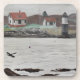 A painting of Ram Island near Boothbay Harbor in Maine. The artwork depicts Ram Island Lighthouse and it's support buildings as seen from Ocean Point, Maine looking across Fisherman Island Passage. The island can be seen through a light layer of fog while a duck lifts off from the water in the foreground. The lighthouse was built in 1883 and is still an operational US Coast Guard navigation aid. This Ram Island Light is not to be confused with Ram Island Ledge Lighthouse which sits at the entrance to Casco Bay near Portland, Maine further to the south.