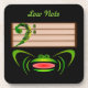Música de hoja representada con una rana toro como nota baja y un poco de polo como un bajo. Los colores son verdes y amarillos para las ranas y marrón borroso para las líneas de la hoja.