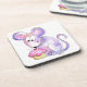 Esta es una original pintura de medios mixtos de un capricho púrpura con un quequito rosado.