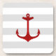 Posavasos Rayas rojas náuticas del blanco gris del ancla