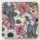 Patrón vectorial dibujado a mano con varias flores, hojas y aves grises