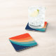 Ilustracion abstracto de rayos solares coloridos (rojo, naranja, azul, turquesa, azul marino) con rayas geométricas curvadas decoración