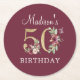 Posavasos Redondo De Papel 50.º cumpleaños Burgundy Gold personalizado