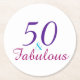 Posavasos Redondo De Papel 50 y fabuloso cumpleaños morado azul rosado